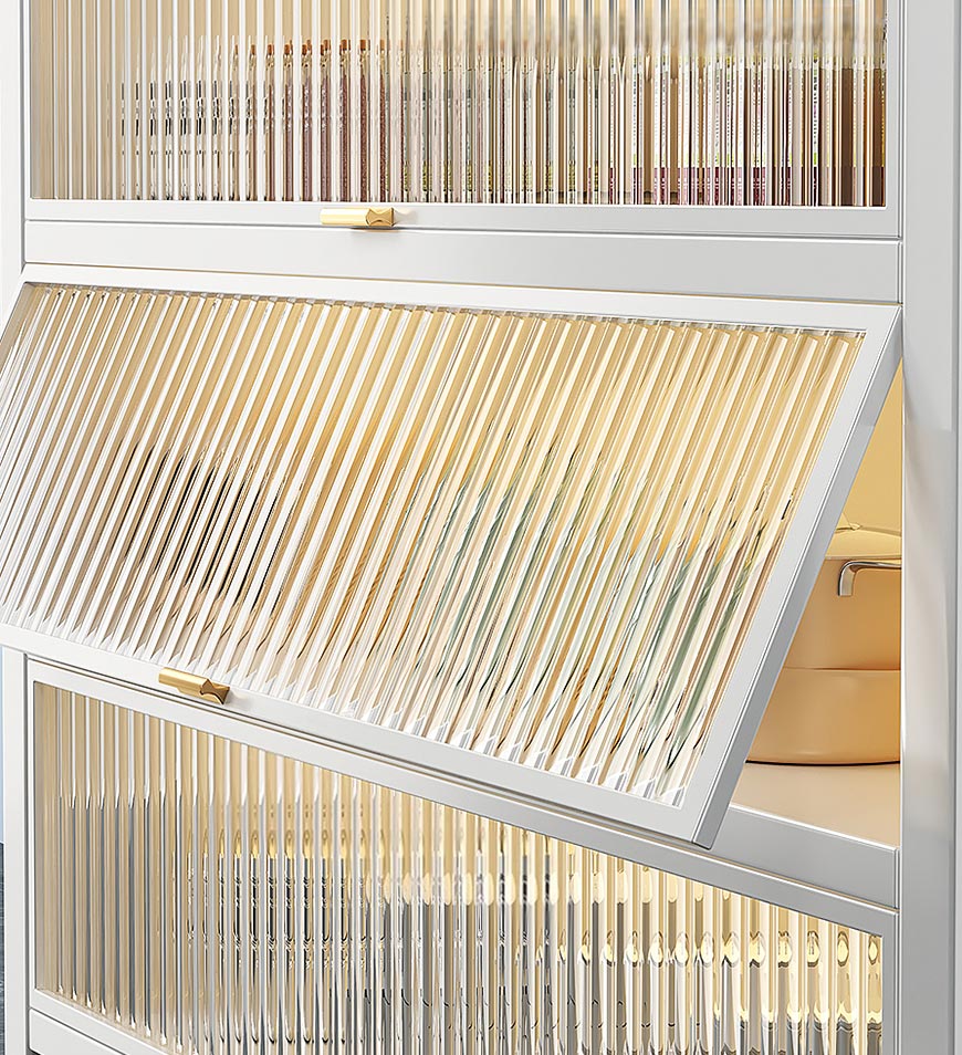 • Clamshell Visualization Cabinet Door:The locker adopts a detachable wave pattern flip-type PC door panel, translucent door panel, stylish appearance, durable and dustproof. Multi-Function And Multi-Scene Use: Suitable for kitchen, dining room, living room, study, etc. Can be used as a sideboard, or cabinet, It can also store towels, toiletries, spice jars, snacks, fruits, shoes, and other items.