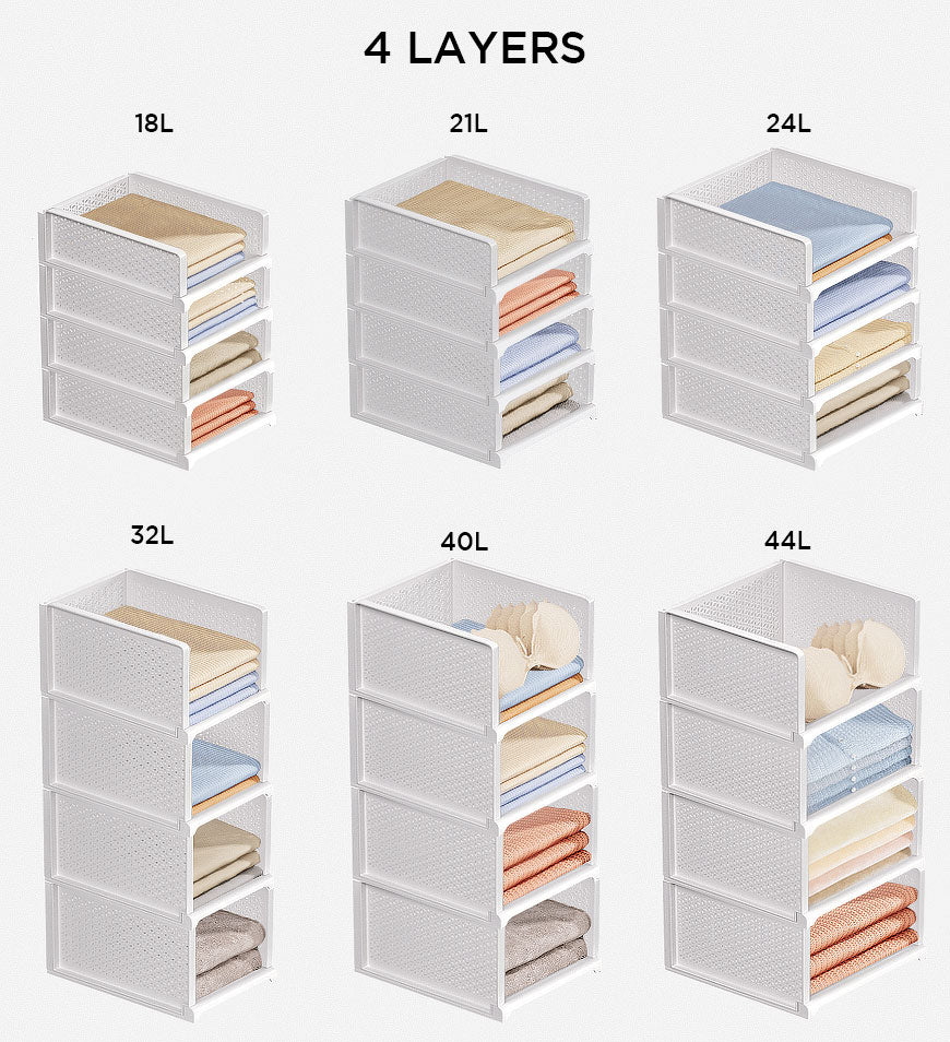 - Stackable Clothes Storage Baskets: These wardrobe storage shelves can be stackable which makes home space organized, maximising the use of vertical space.