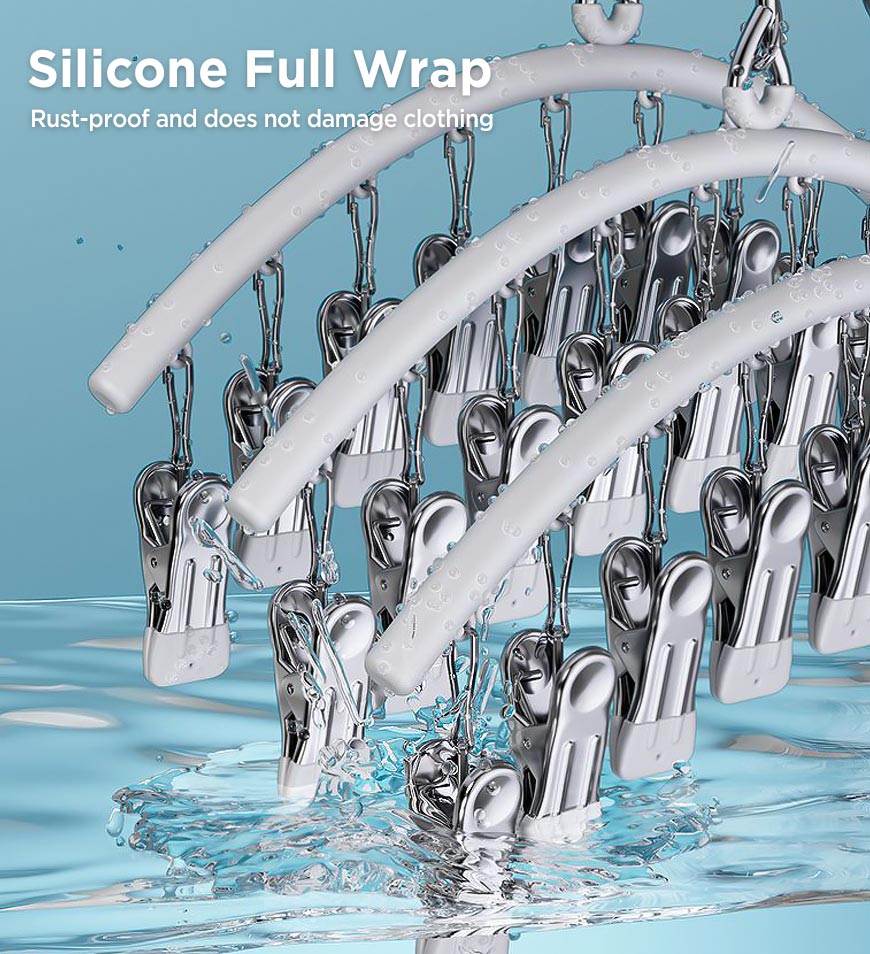 - Windproof Design,10 Pcs Clips Outfitted Every Rack:The hook is large enough to fit any standard size clothesline and clothes rail.With windproof design,it will prevent the clothes from being blown away effectively.The 10pcs stainless steel clips are bright,smooth,rustproof,sturdy,super corrosion resistance,healthy and harmless.It provides strong grip for clothes.This drying rack is not only suitable for indoor use,it works well for outdoor use even in windy days.