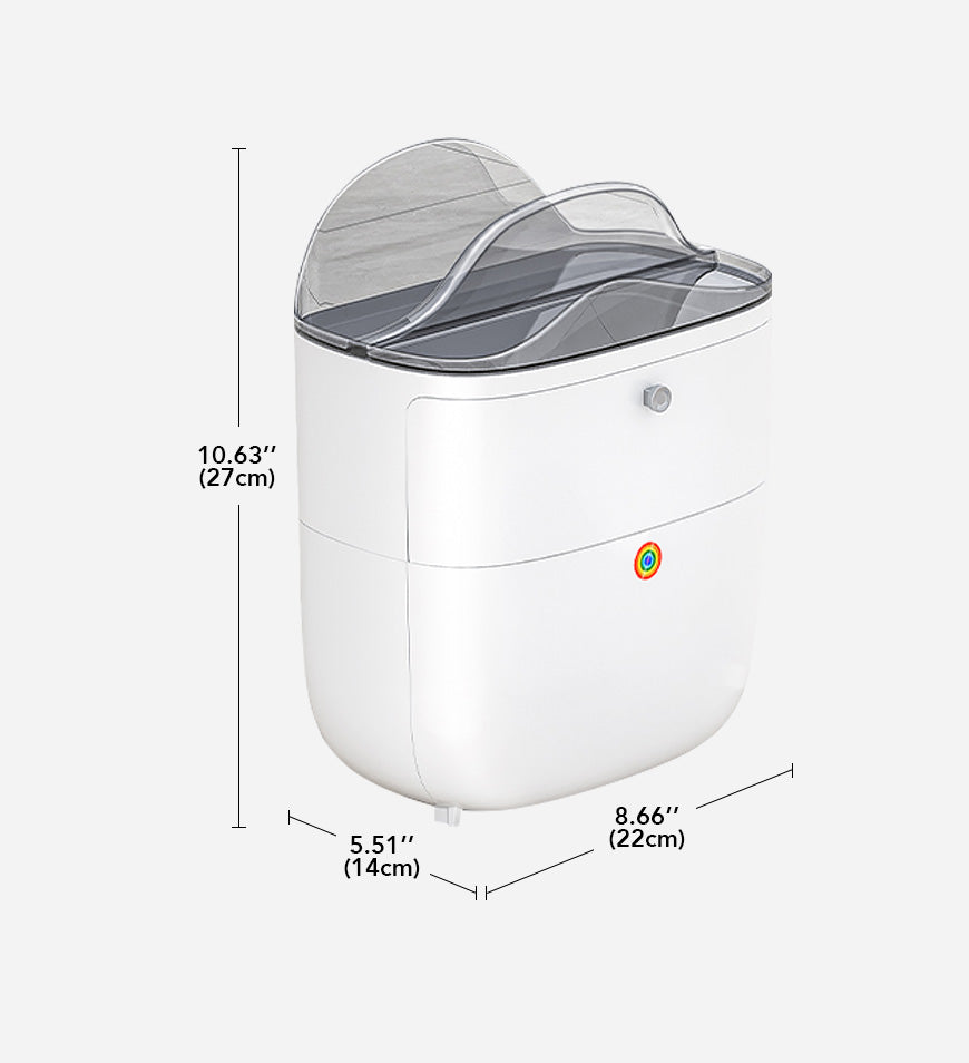 - Multi-Purpose Use: The top of the toilet roll holder can hold your mobile phone, watch, wet wipes, glasses and other little gadtets when you at toilet or have a shower, very convenient and practical(It's a surprise to play music on it). It is not only toilet paper tray but also the storage box, can store garbage bag and privacy items such as sanitary napkins.